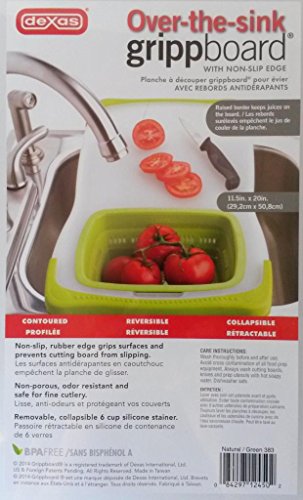 - Title : Dexas 2 Piece Over the Sink Cutting Board with Green Grip Edge and Removable Green Silicone 6 cup Strainer