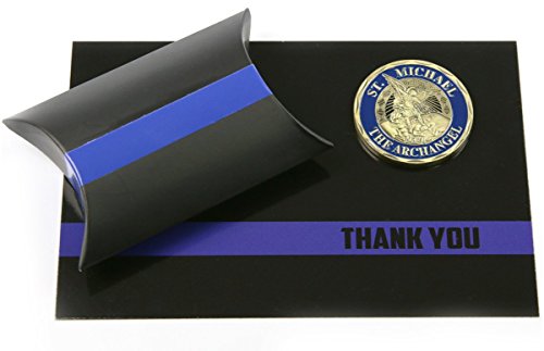 Thin Blue Line Police Officer Support Gift Set St. Michael Challenge Coin & Thank You Card