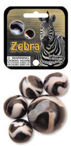 Studio : FS-USA Publisher : FS-USA Binding : Toy Product Description This collectible set of toy glass mega-marbles includes 24 matching Game Pieces and a matching Shooter. All are neatly packaged in a mesh net and capped off with an instruction card that explains the game of marbles. The inside of the instruction card is filled with fun facts relating to the theme of the set. Start and Expand your collection! Player Marbles measure approximately 5/8 inch (16 mm). Shooter Marble measures approximately 1 inch (25 mm). Instruction/Fact Card measures approximately 2.75 x 2.75 inches (70 mm). The Zebra Game Net Set features 24 Opaque Black and White Glass Player Marbles. Set Features a matching Shooter and is complete with Gaming Instructions and Fun Facts. This collectors set will make playing the classic game of marbles a "Striped" good time! 0