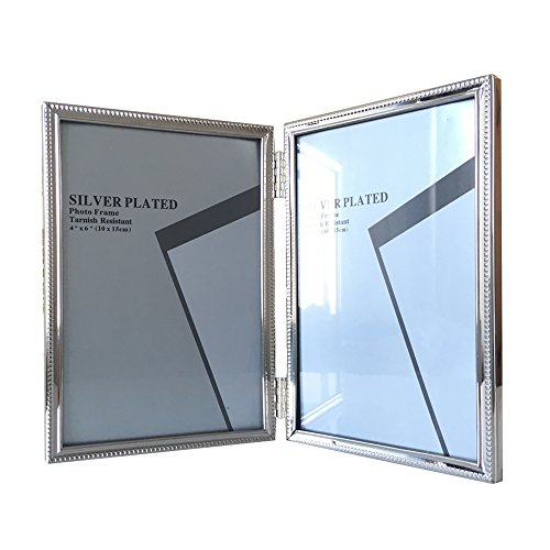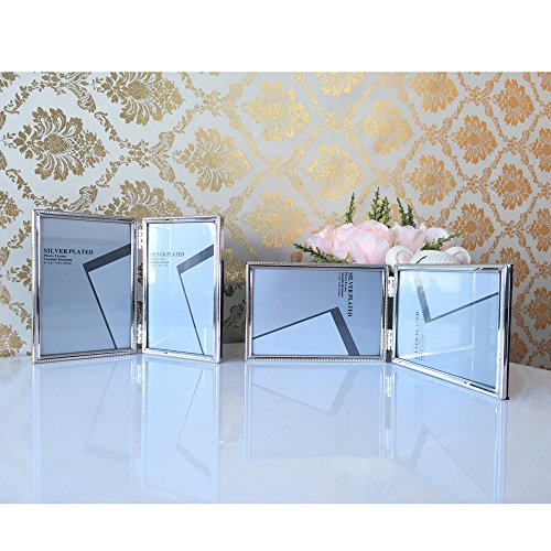 Photo Frame Multiple Photo Frame Collage Picture Display Metal Hinged Double Picture Frame Collage for Desktop Contracted Style for Home Decorative Nice Gift for Wedding Anniversary 4×6 Inch Silver