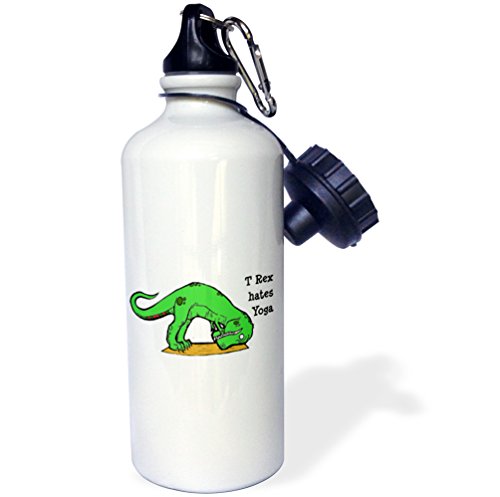 3dRose wb_193329_1 T Rex Hates Yoga, Sports Water Bottle, 21 oz, White