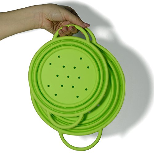 SPACE SAVING DESIGN - the colanders with collapsible/folding design, easy to carry when you out for traveling or camping. Saves space when these are not in use in kitchen. It would be easier to fold on a flat top by simply pressing