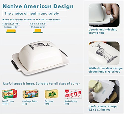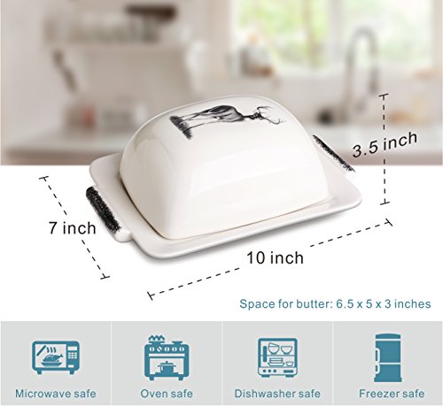 YHY Ceramic Butter Dish with Lid for Butter in All Sizes Beautiful and elegant animal print artwork. Large enough size for all sizes of butter, you can put two or even three pieces of butter in standard size Convenient and Practical Butter Keeper - Wide enough base, sturdy and scratch resistance, handling butter becomes very convenient. - Dishwashers, microwave and refrigerator safe. Concerns From Customers Buying Butter Dish Can this butter dish serve my frequently used butter? This is a butter dish which takes care of lovers of large butter, it can almost serve butter from all brands and in all sizes Is the Butter Keeper easy to clean? Yes, the Butter Keeper Crock is dishwasher safe. If needed, clean by hand with hot water and detergent. I am very worried about receiving broken butter dish Please do not worry about this problem, we use perfect packaging which have gone through a rigorous drop test, and we use biodegradable environmentally friendly packaging materials to ensure customers can rest assured to buy. If you still receive broken butter dish, please contact us, we will replace a new set for you.