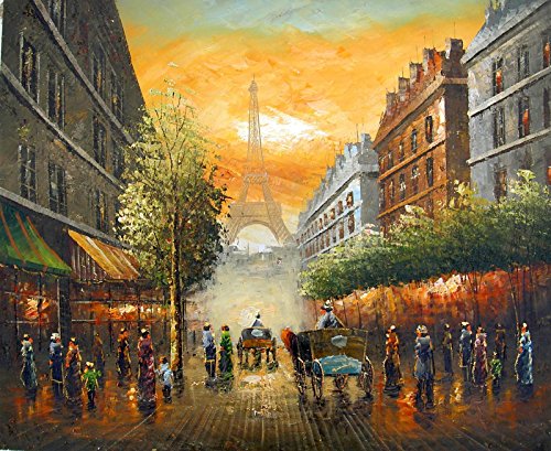 -. Title : Oil Painting On Canvas Paris Sunset And Eiffel Tower 13 X 17 unframed