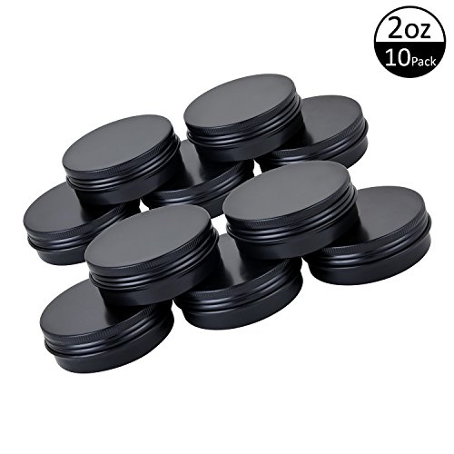 TMO Aluminum Tin Jars 2Oz 60G Screw Top Round Jars Metal Tin Cans Aluminum Tin Containers Bulk Food Tins Cosmetic Jar Container Candle Travel Tins(Black,10 Pack)