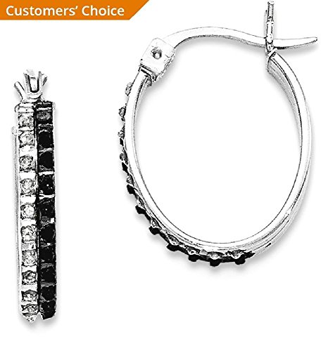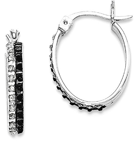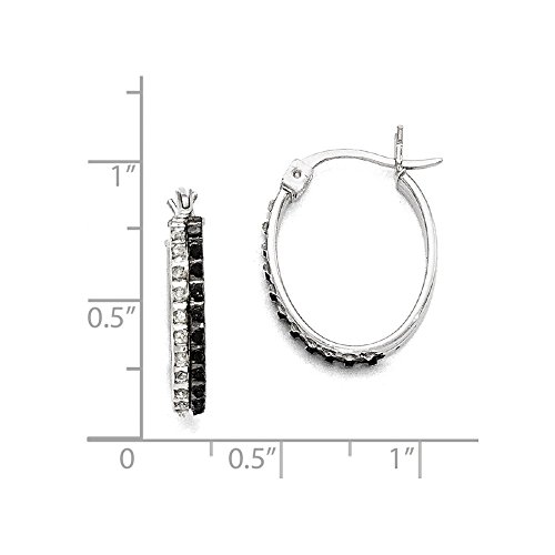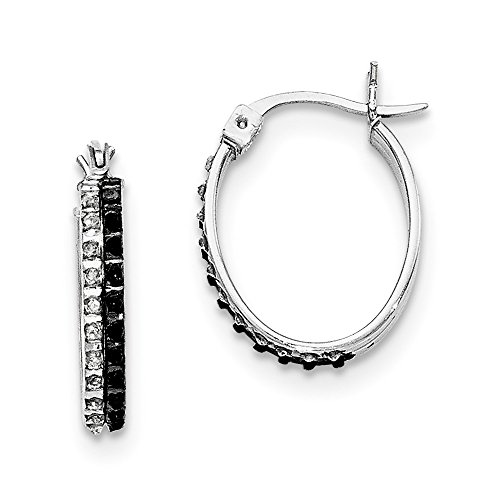 ICECARATS DESIGNER JEWELRY 925 STERLING SILVER BLACK WHITE DIAMOND OVAL HINGED HOOP EARRINGS EAR HOOPS SET FOR WOMEN
