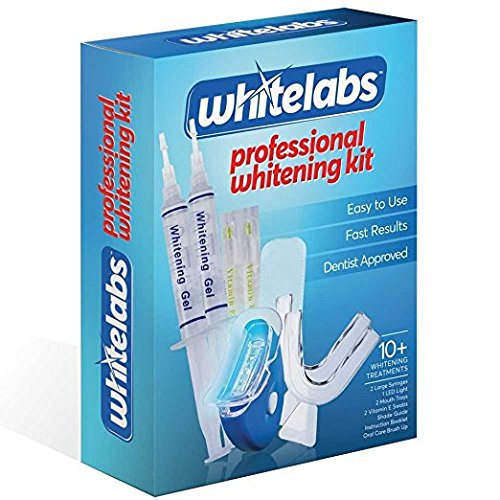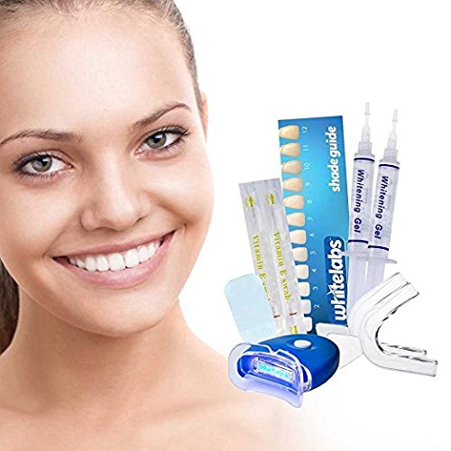 WhiteLabs Kit Contains: 2 Moldable Mouth Trays, 2 Large Whitening Gel Syringes, 2 Vitamin E Swabs, 1 Led Light, 1 Shade Guide and Instruction Booklet. Everything Needed to Whitening Your Teeth