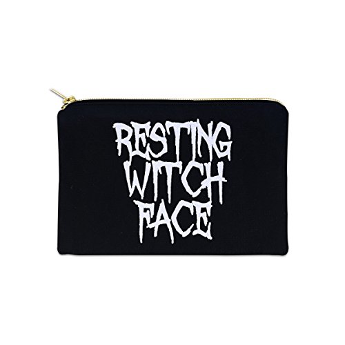 Resting Witch Face 12 oz Cosmetic Makeup Cotton Canvas Bag - (Black Canvas)