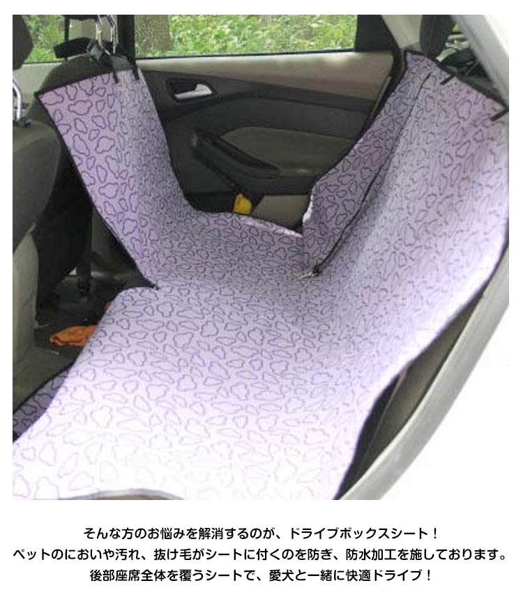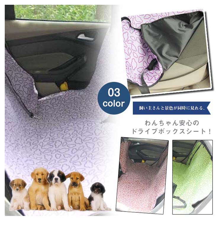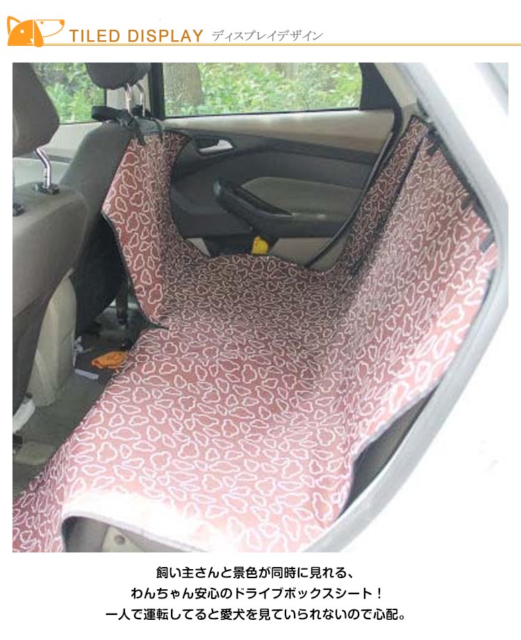 | 飼い主さんと景色が同時に見れる、わんちゃん安心のドライブボックスシート!一人で運転してると愛犬を見ていられないので心配。そんな方のお悩みを解消するのが、ドライブボックスシート!ペットのにおいや汚れ、抜け毛がシートに付くのを防ぎ、防水加工を施しております。後部座席全体を覆うシートで、愛犬と一緒に快適ドライブ!ファスナー式で片面を開けられ、愛犬の横に座る事ができ、とても便利です! | |
