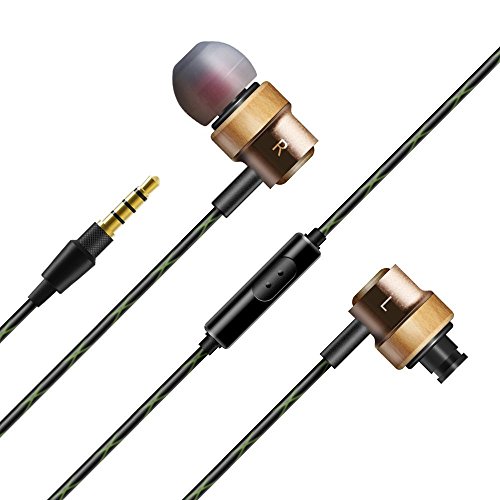 -. Title : ALZN Premium Wood Earbuds, In-Ear Headphones, Stereo Bass Noise-isolating Earphones with Mic