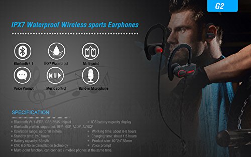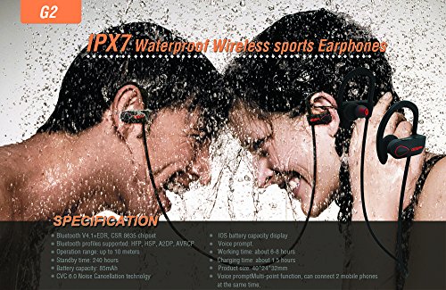 IPX7 Waterproof - Say Goodbye to Water Damage! These waterproof bluetooth headphones wireless headsets are rated IPX7 allowing you to bring your music to just about anywhere. IPX7 protects from immersion in water with a depth of up to 1 meter (3.2ft) giving you the ability to listen to your favorite music even in the shower