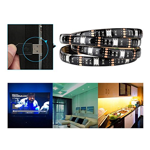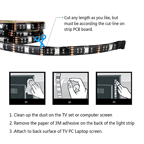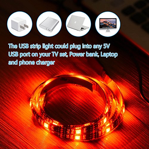 - TV Backligting LED Strip Light : The total length is 3.28ft.Used for light up TV (HDTV)/Desktop monitor.With 5V USB cable connector and 24 kyes remote controller for color changing,flash,strobe,fade,smooth, and brightness dimming.RF remote controller can change 16 colors with19.6ft-26.2ft control distance.