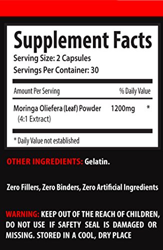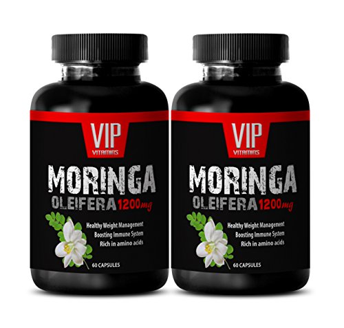 Studio : VIP VITAMINS Publisher : VIP VITAMINS Binding : Health and Beauty Product Description Moringa oleifera - MORINGA OLEIFERA EXTRACT 1200mg - Reduces obesity - 2 Bottle 120 capsules MORINGA OLEIFERA EXTRACT 1200mg - IMMUNE BOOSTER ANTI INFLAMMATORY: Is a highly formulated pure natural extract with a unique formula that can be highly beneficial for: healthy weight management, boosting immune system, providing natural relief for joints and back pain, stimulating hair growth, fighting off inflammation, supporting cardiovascular syste, and reducing dandruff. MORINGA OLEIFERA EXTRACT 1200mg - NATURAL FAT BURNER: May promote weight loss. This beneficial effect is caused by several factors. The Moringa's anti-inflammatory and diuretic effects help reduce water retention. Its high fiber content reduces fat absorption in the gut and may prevent excess fat accumulation. Moringa extract also might have a mild laxative effect. The high fiber content facilitates easy movement of stomach contents along the digestive tract and relieves constipation. Moringa extract also can act as a digestive aid. MORINGA OLEIFERA EXTRACT 1200mg - ANTIBACTERIAL: Has ZERO Fillers, ZERO Binders, ZERO Artificial Ingredients. This amazing extract might act as a cardiac and circulatory stimulant and natural diuretic. It is believed to be helpful for fighting off bad bacteria, yeast, harmful organisms, inflammation, improving brain function, and normalizing cholesterol levels. MORINGA OLEIFERA EXTRACT 1200mg - POTENT ANTIOXIDANT: Provides great antioxidant benefits and bioactive plant compounds. This potent extract contain lots of vitamins A, C, B-complex and other free radical busters that fight off oxidative damages. Thus, it might be beneficial for overall health. Moringa Olifeira goes by a variety of names, such as drumstick tree, horse radish tree, or ben oil tree. 0