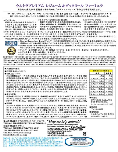 原材料:ダックミール、乾燥ヒヨコマメ、乾燥エンドウ、エンドウマメでんぷん、ダック肉、自然風味、キャノーラオイル(天然混合トコフェロールとクエン酸で酸化防止)、亜麻仁、天然塩、サーモンオイル、塩化カリウム、ビタミンE、ナイアシン、D-カルシウムパントテン酸塩、ビタミンA、一硝酸チアミン、ピリドキシン塩酸塩、リボフラビン、ビタミンD3、ビオチン、ビタミンB12、葉酸、DL-メチオニン、硫酸亜鉛、硫酸鉄、硫酸銅、硫酸マンガン、亜セレン酸ナトリウム、ヨウ素酸カルシウム、塩化コリン、タウリン、鉄アミノ酸キレート、マンガンアミノ酸キレート、亜鉛アミノ酸キレート、銅アミノ酸キレート、天然混合トコフェロール、クエン酸