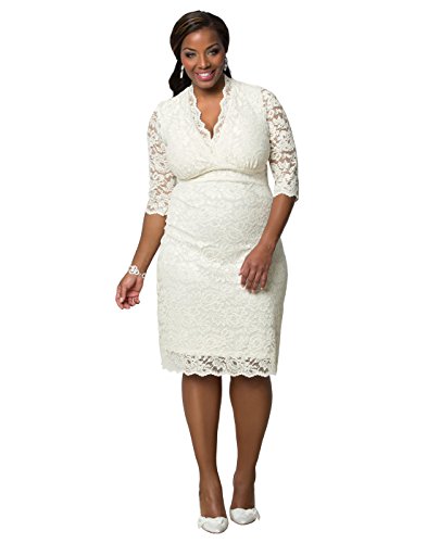 Binding : Apparel Product Description Say "I do" to a stylish and modern wedding dress. Based off of our best selling 3/4 Sleeved Scalloped Boudoir Lace Dress, this ivory version is picture perfect for your wedding day. Soft ivory scalloped lace skims your body and hugs your curves to give you a beautiful hour glass figure. Lace: 62% Nylon, 27% Rayon, 11% Spandex; Lining: 100% Polyester. Dry clean only. Made with love in the U.S.A. 0