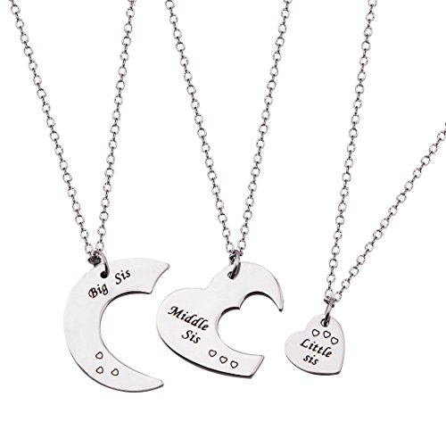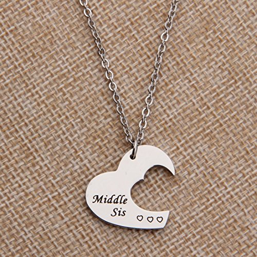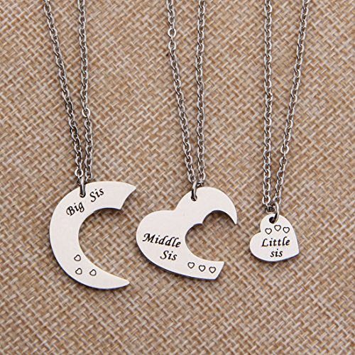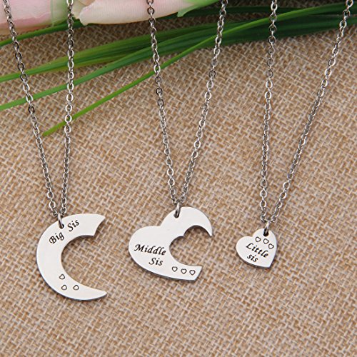 Heart Sister Necklace, Gift For Big Sis Middle Sis Little Sis, Matching Little Sister Middle Sister and Big Sister Necklace Set Of 3