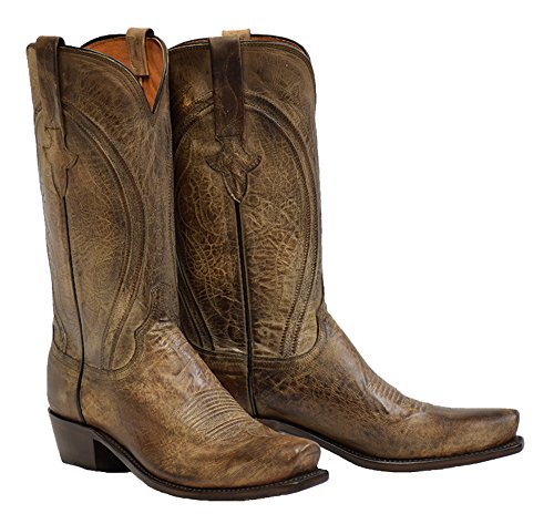 Binding : Apparel Product Description Lucchese Bootmaker Clint Antique Peanut Brittle Mad Dog Mens Boots N1657.73. Lucchese Bootmaker Antique in Peanut Brittle Mad Dog is handcrafted in El Paso, Texas for Boot Star by Lucchese Bookmaker. Clint is a traditional, yet modern cowboy boot. Lucchese's new Heirloom Finish creates a modern, worn-in look in mad dog goat. This boot features fine Western cording and subtle stitch designs.Lucchese Boot Company. Sam Lucchese Sr. and his brothers came to America in 1880, and although just 17 years old, the young Lucchese had a vision for western boot making. Within just three years the Lucchese Boot Company was born in San Antonio, Texas. The family's dedication to its craft and to its customers continued through the generations, and by the 1960s the founder's grandson and namesake, Sam Lucchese Jr. had revolutionized the art of boot making. His fascination with and comprehensive understanding of the human foot inspired him to create a boot design that fit like no other. Although Lucchese's exclusive boot last design required more skill and time, the result was a cowboy boot that quickly gained national recognition for its extraordinary comfort, quality and fit. Today, Lucchese Boot Company upholds the same standards and vision of what a handmade cowboy boot should be. Every Lucchese boot is hand-inspected twice. From the careful selection and cutting of the finest grade of leathers to the meticulous finishing of each cowboy boot, in virtually every procedure of the production of a Lucchese boot, human hands are relied 0