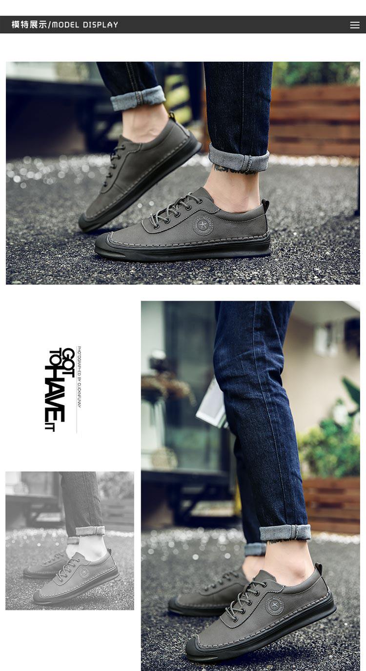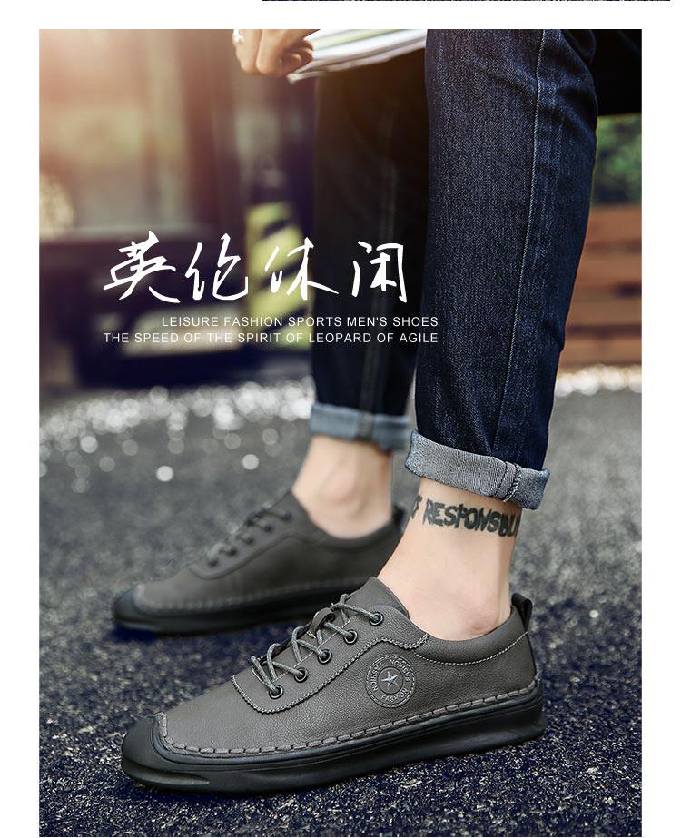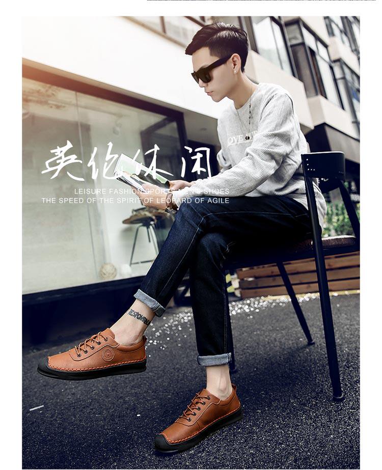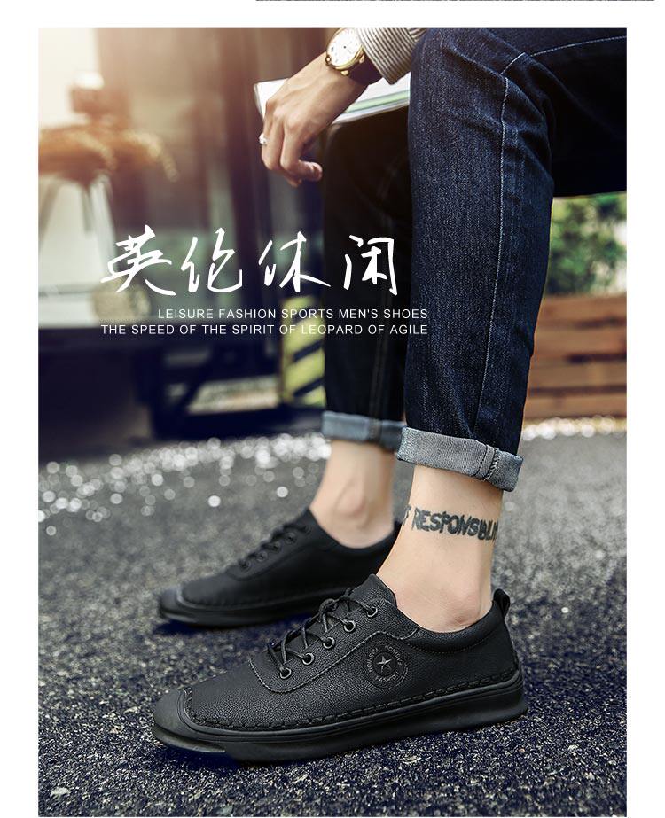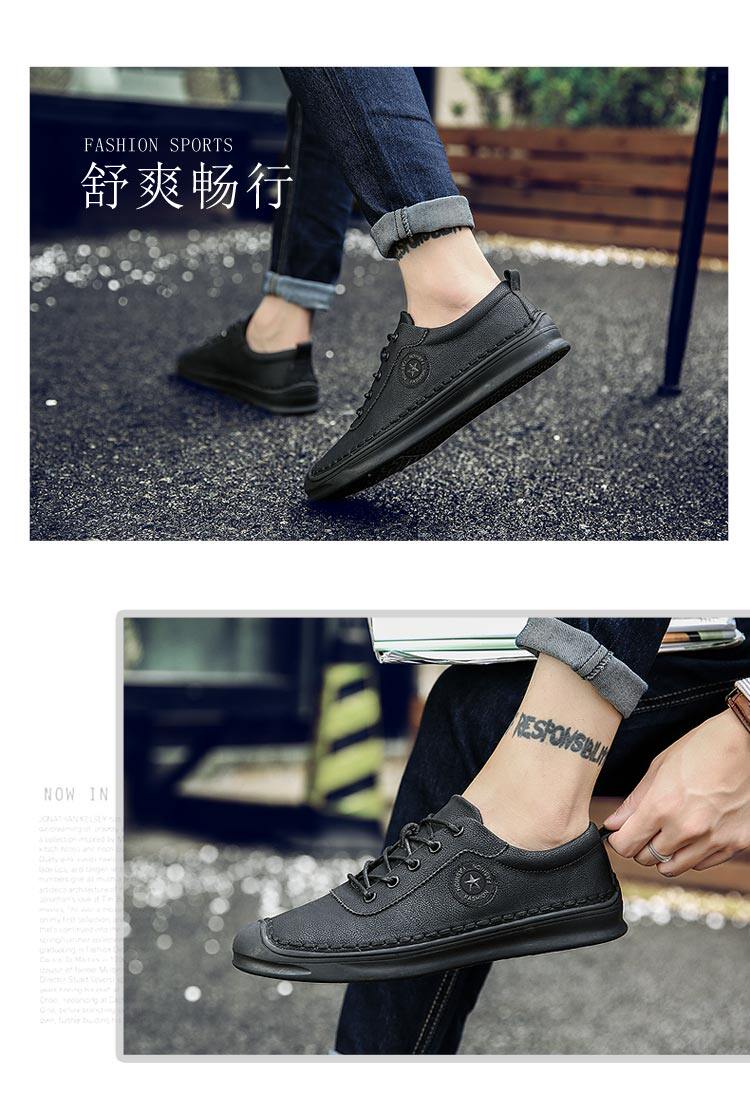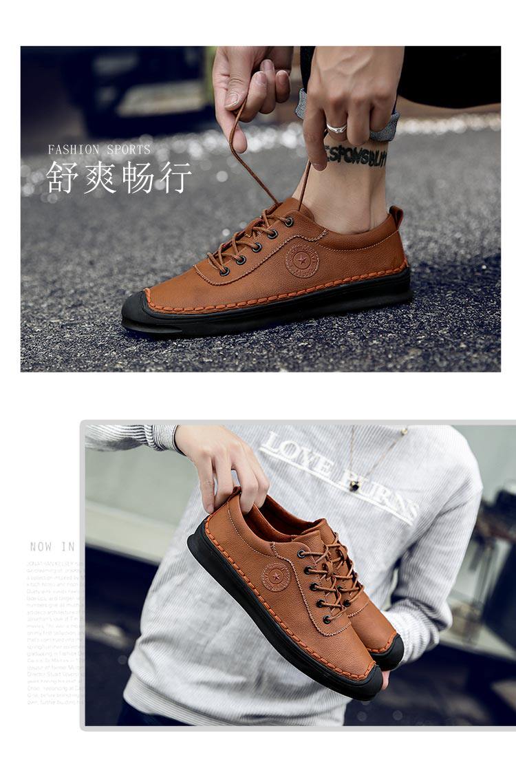 秋冬男鞋子韩版男士休闲皮鞋手工缝线复古男潮鞋百搭板鞋男豆豆鞋