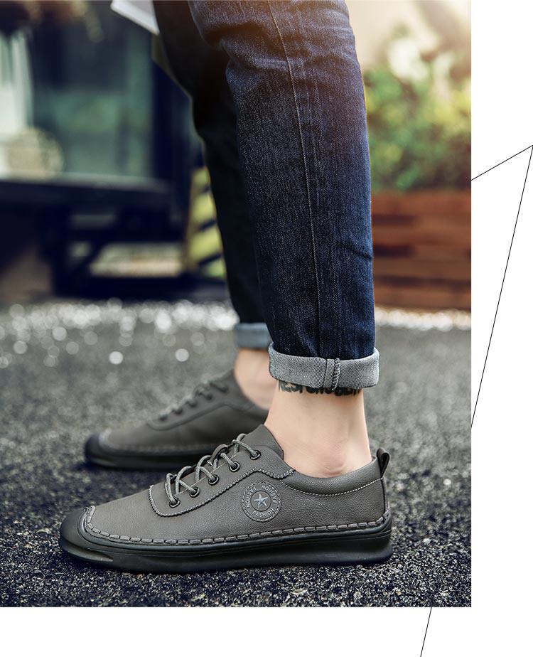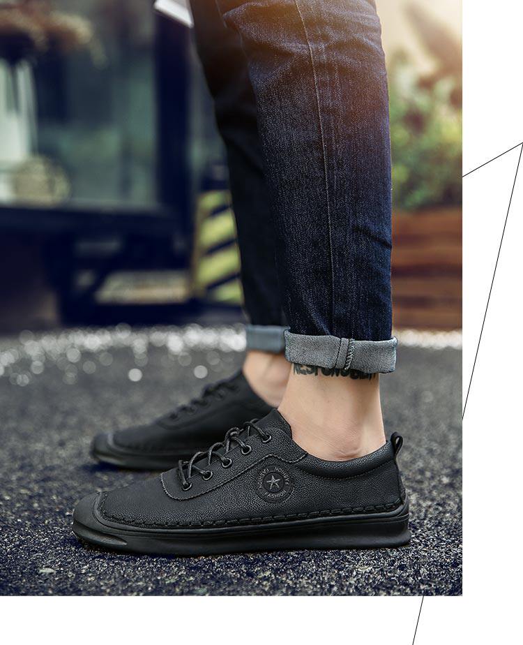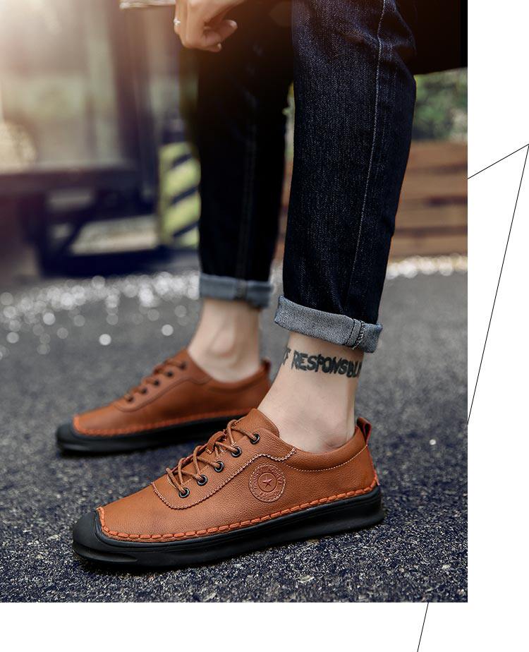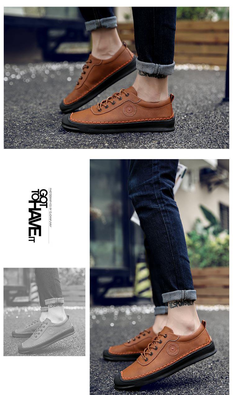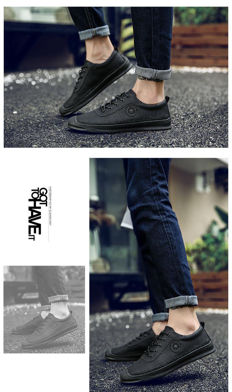 秋冬男鞋子韩版男士休闲皮鞋手工缝线复古男潮鞋百搭板鞋男豆豆鞋