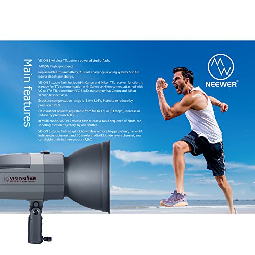 Neewer Vision5 400W TTL for CANON HSS Outdoor Studio Flash Strobe with 2.4G System and Wireless Trigger, Lithium Battery (up to 500 Full Power Flashes), German Engineered, 3.96 Pounds, Bowens Mount