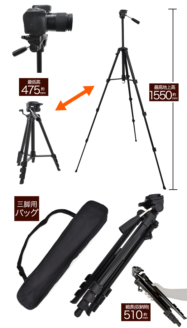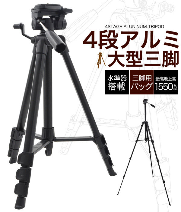最大地上高1550mm!4段アルミ大型三脚