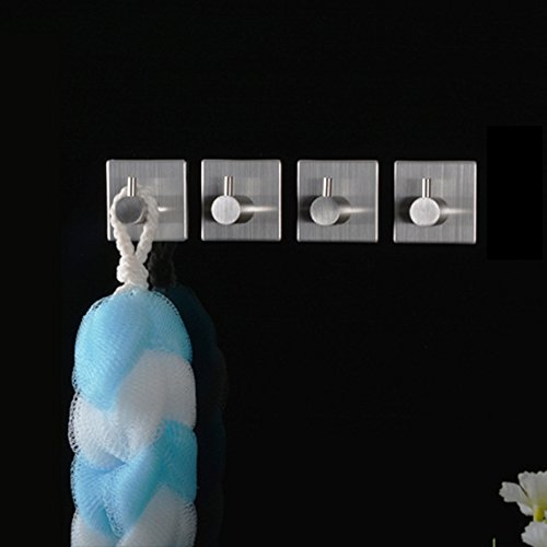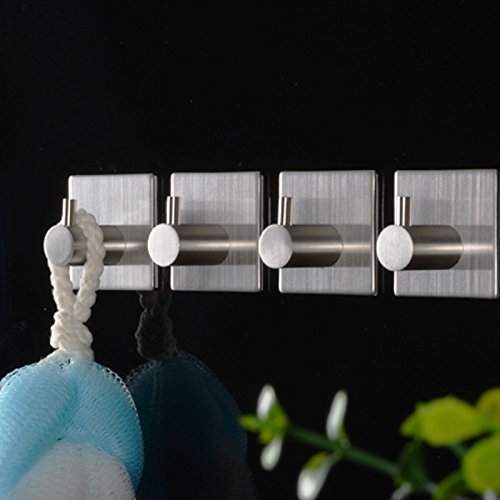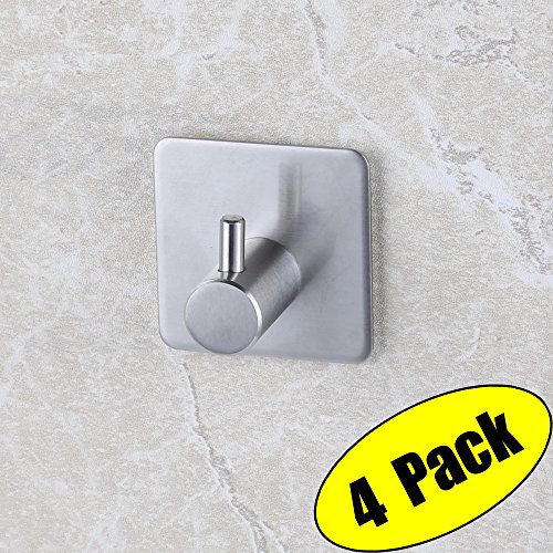 KES SUS 304 Stainless Steel Self Adhesive Towel Robe Hook and Self Sitck On Wall Hook Sticky Brushed Finish 4 Pieces, A7060-2-P4