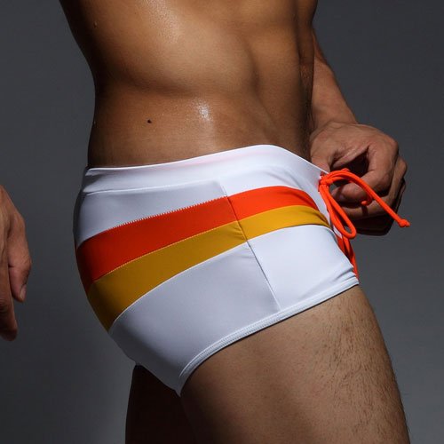 -. Title : Men's swim trunks men's swimwear,XL,Orange and white