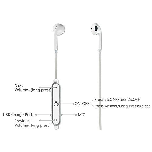 Molong 블루투스 Bluetooth V4.1wireless 스테레오 이어폰,CVC6.0소음 격리,고감도HD Micro내장 【흰색】