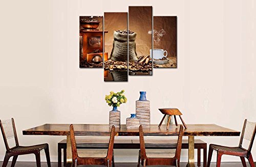 -. Title : So Crazy Art® Brown 4 Piece Wall Art Painting Coffee Cup Plate Pictures Prints On Canvas Food The Picture Decor Oil For Home Modern Decoration Print