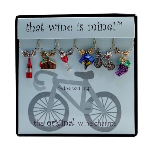 -. Feature : That Wine is Mine, the original wine charms / Unique whimsical charms instantly individualize wine glasses by wrapping a loop around the stem / Sets of six hand cast pewter and hand painted charms / Elegant gift box / Choose from over 70 of different themes: wine country, wedding, girl stuff, tropical, animals, fun & games