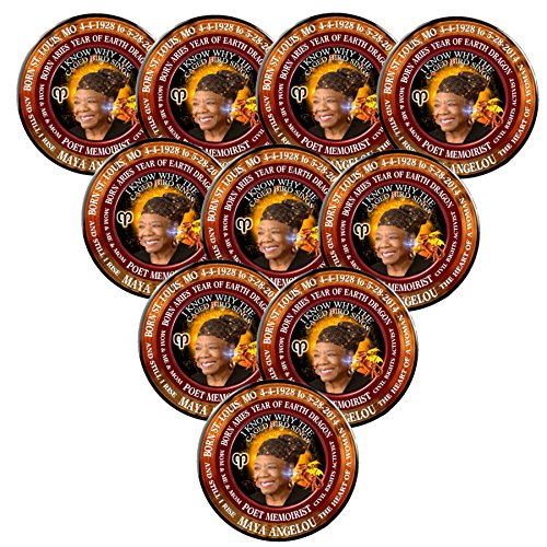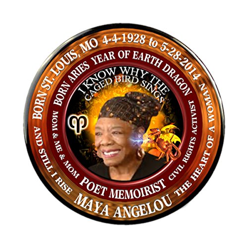 Binding : Apparel Product Description Pack-10 Maya Angelou Writer Pin, Astrology Aries Zodiac Earth Dragon . This design is 1 of 15 female writers in a set by Valxart. Each button has writers name,place of birth, date of birth and death, astrology sign, zodiac year of birth and a few accomplishments. Look up valxart female writers to find the rest. 0