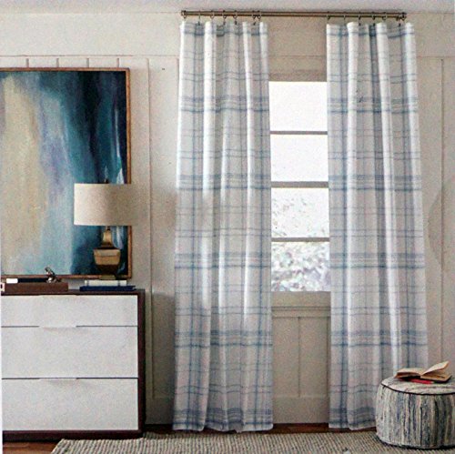 Tommy Hilfiger Window Curtain Panels -- Set of 2 Light Blue Plaid Pattern on White Each Curtain Measures 50" x 84" 100% Cotton, Machine Washable Brand : Tommy Hilfiger EAN : 0710465363793
