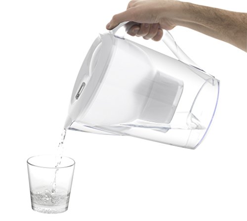 Large, White Water Pitcher With 1 Easy To Use Filter. Product Size 8 x 6 x 12 inches.