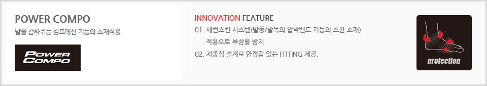 | 소재 | 겉감재료:합성가죽+메쉬(폴리에스터100%) 안감재료:메쉬(폴리에스터100%) 창재료:파일론+합성고무 |