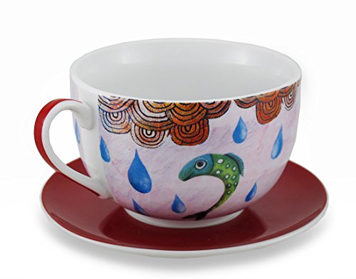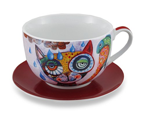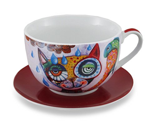 -. Title : Allen Designs Colorful Cat and Fish Ceramic Coffee Cup / Saucer Set