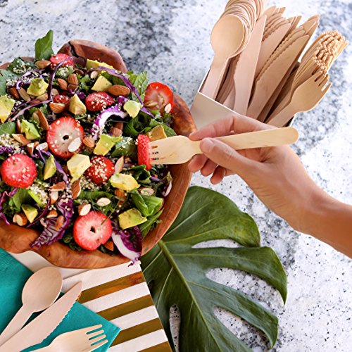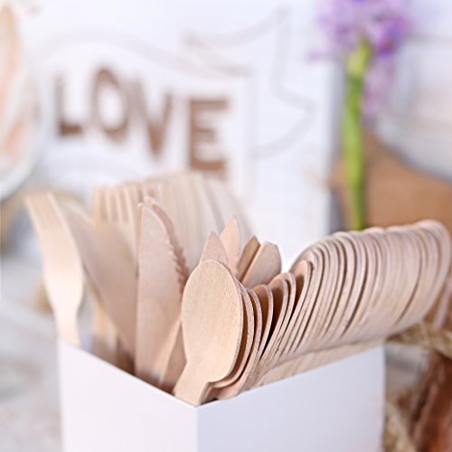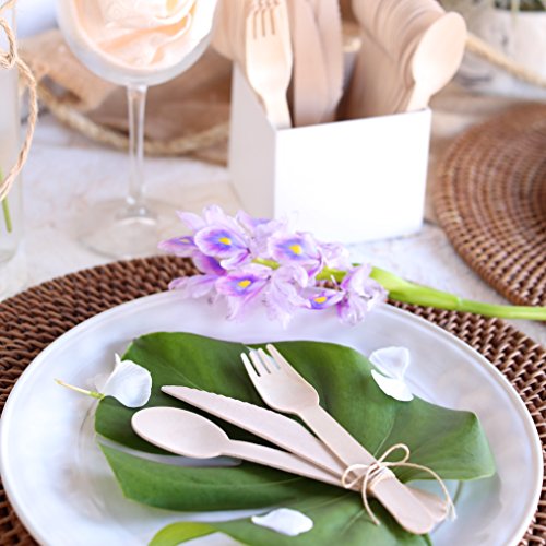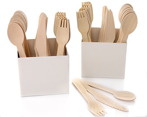 Wooden Disposable Cutlery Set – Go green without loosing functionality and style. Includes 2 Table Organizers for convenient display.