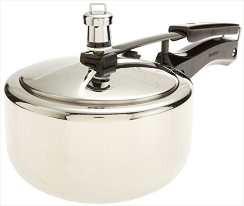 This is a stainless steel 4.0 litre pressure cooker with a whistling pressure cooker
