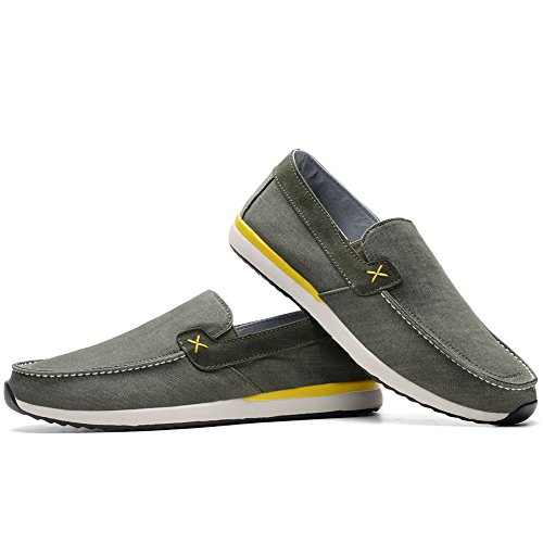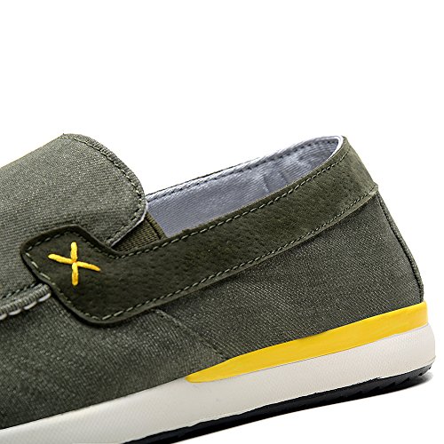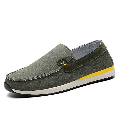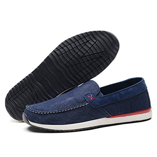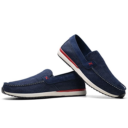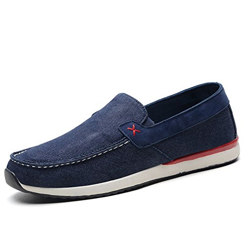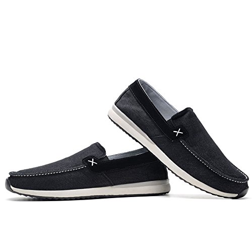 Binding : Apparel Product Description Men's Canvas Shoes Comfort Casual Slip On Loafers Walking Sneakers Driving Shoes.Slip-on style loafers which are easy on and off.The canvas upper contains elastic on both sides, padded collar and footbed for extra comfort, and durable,slip resistant rubble sole.From the beach to the city streets, east coast to west, the shoes is your best choice that match for whatever journey you putting them on. 0
