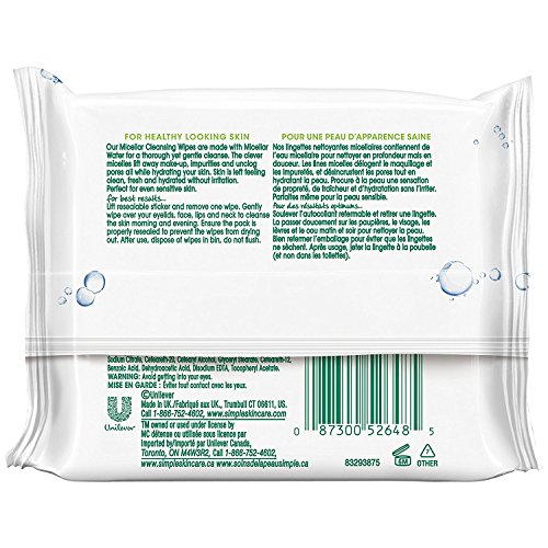 Simple Micellar Makeup Remover Wipes have combined the magic of Micellar, from our Cleansing Water, with our convenient wipes format. Micellar Wipes cleanse your face easily, remove impurities, and tough makeup with just one wipe. Our Simple Micellar cleansing water powered by micelles, our clever cleansing bubbles, is trapped between the soft fabric layers of our Simple Micellar Make-up Remover Wipes that gently remove the makeup while instantly hydrate your skin. These wipes are gentler than soap-based cleansers so skin is not left feeing dry or tight. These innovative Makeup Remover Wipes have no artificial perfumes or dyes and no harsh chemicals that can upset your skin. They are made with skin-loving ingredients perfect for all skin types, including Vitamins B and E and triple purified water, our purest possible water that instantly puts hydration back to the skin. Simple® is a complete range of facial skincare products perfect even for sensitive skin. The Simple® brand knows that what is left out is as important as what is put in when it comes to gentle, yet effective skincare. The complete Simple range has 18 products, including cleansers, moisturizers, eye care, and wipes. All Simple® products have no dyes, artificial perfumes or harsh irritants that can upset skin and contain skin-loving ingredients and added vitamins for natural, healthy-looking skin. Simple® products are hypoallergenic, non-comedogenic and pH balanced.Feature