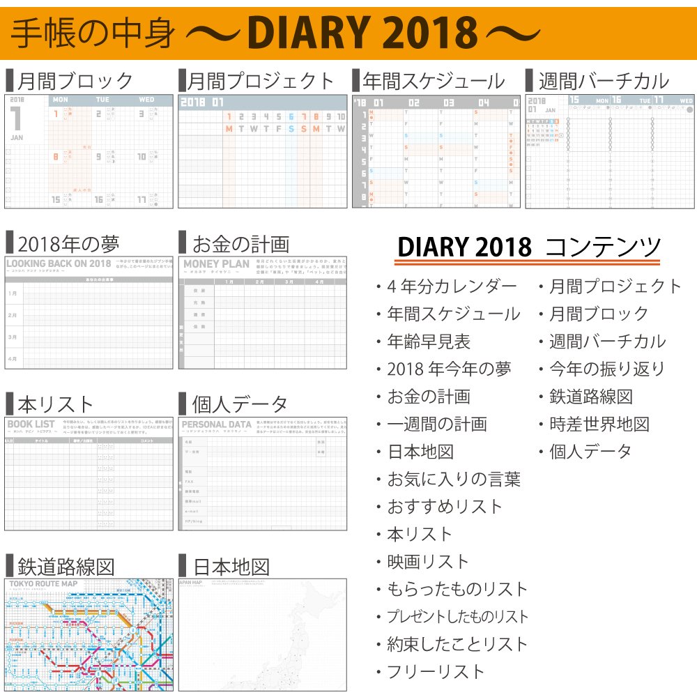 - Contents of set / DIARY2018, LIFE, IDEA, instruction manual, hard cover with penholder