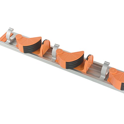 Mop and Broom Holder Garage Storage Systems and Garden Tool Storage Rack,Wall Mounted Aluminium Alloy Towel Hook rack Adjustable Broom Organizer (3 Position with 4 Hooks, ORANGE)