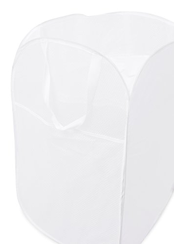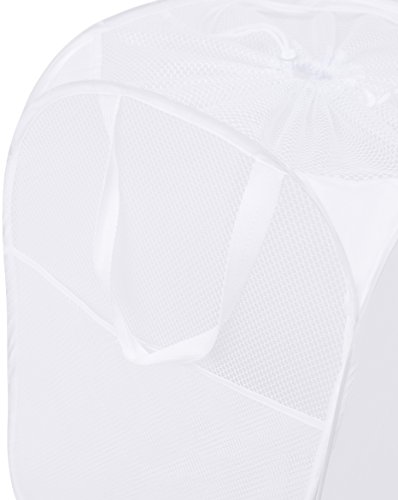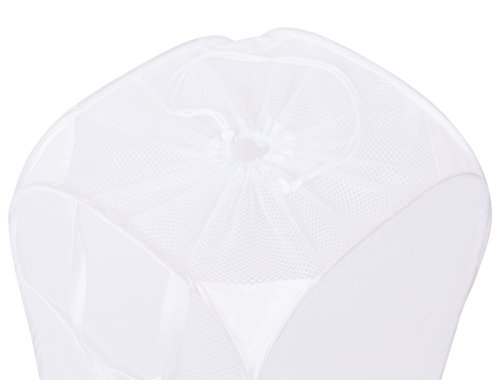 Internet's Best Square Pop Up Laundry Hamper | Collapsible Laundry Bag with Mesh Drawstring Lid | Carry Handles | Dirty Laundry Sorter Basket | White