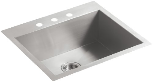 Kohler K-3822-3-NA Vault Medium Single Kitchen Sink with Three-Hole Faucet Drilling, Stainless Steel