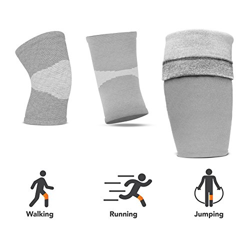 RUNACC Knee Brace Compression Knee Sleeve with Bamboo Carbon Fabric Running, Sports, Great for Relieving Joint Pain and Arthritis Relief, Set of 2, Grey