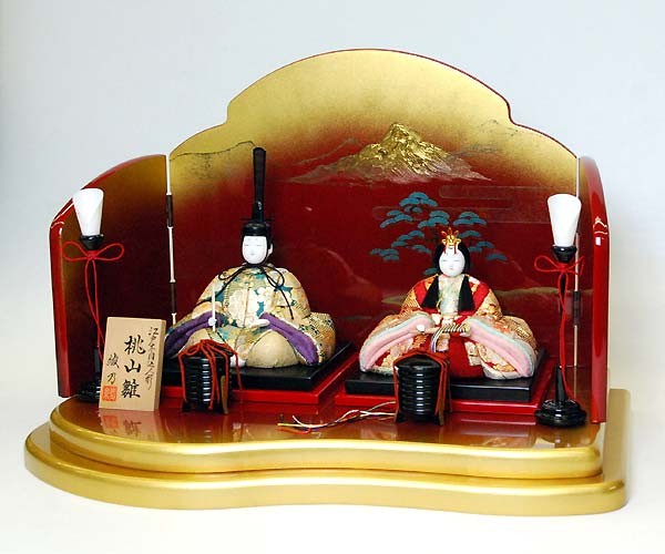 ・台座・屏風等には落ち着いた色目の雛人形セット。