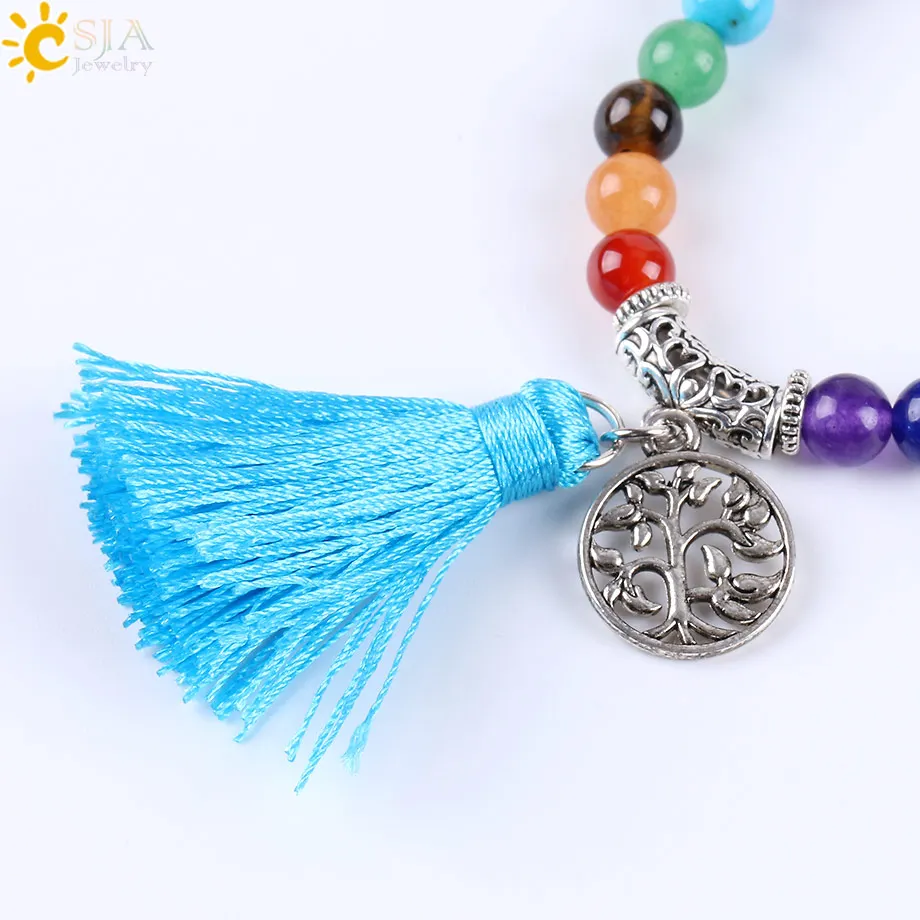 Necklace Feature:Rainbow Colored + Gem Stone Beads + Tassel Tree Charms + Elastic
