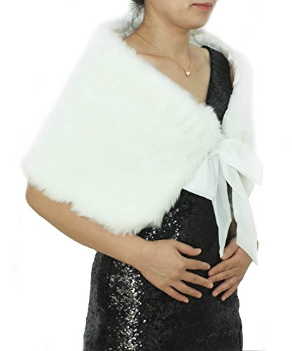 Dressblee Faux Fur Wrap Shawl Shrug Bolero Cape with Satin Bowknot, Bridal Faux Fur Jacket coat...