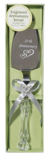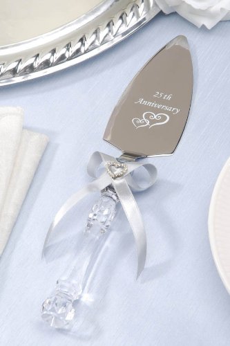 - This Victoria Lynn cake server is a definite keepsake with a 25th Anniversary imprint on the silver blade. The handle is clear with a silver satin ribbon and rhinestone heart embellishment.