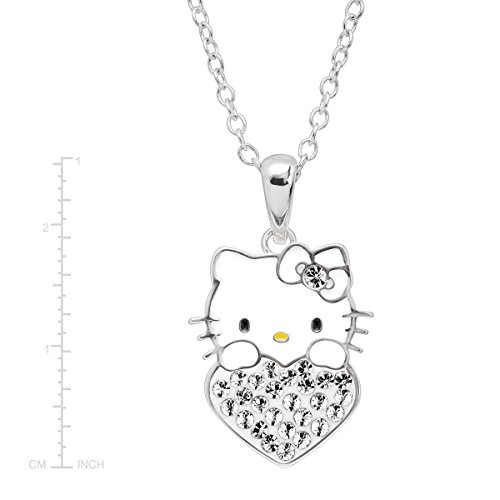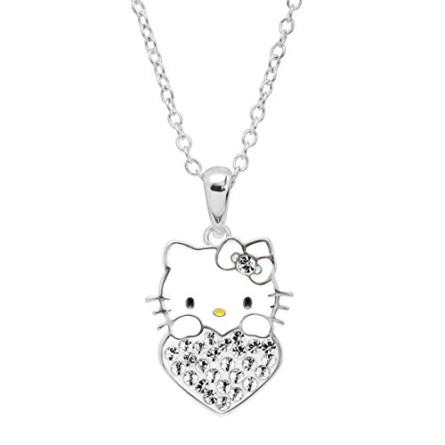 The perfect gift for the April-born in your life! Celebrate with this Hello Kitty heart pendant, crafted in sterling silver-plated brass, featuring round-cut white crystals. Piece measures 1 by 5/8 inches. Comes with a sterling silver-plated brass 18-inch cable chain with a spring ring clasp.Feature