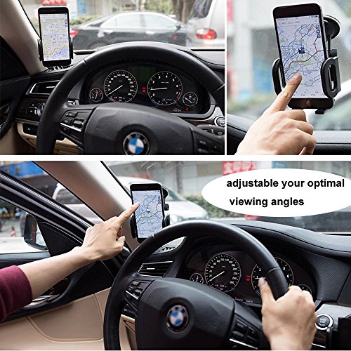 -. Feature : 3-IN-1 DESIGN: universal adjustible car mount holder can stick to your windshield, dashboard or Air Vent for convenience. (but Air Vent not included) / HANDS FREE: simple installation, no tools need. easy one touch mounting system locks and releases the device just a push of a finger / 360 ROTATION: adjustable swivel ballhead supports full 360 degree rotation for the perfect viewing angle while you drive / SUPER STEADY: strong suction cup will hold up your cellphone securely even with case on, while allowing you can focus on drive / BROAD COMPATIBILITY: car mount can fit most mobile phone from the width 4.7CM to 11.5CM, and with its soft padding , securely holds your device